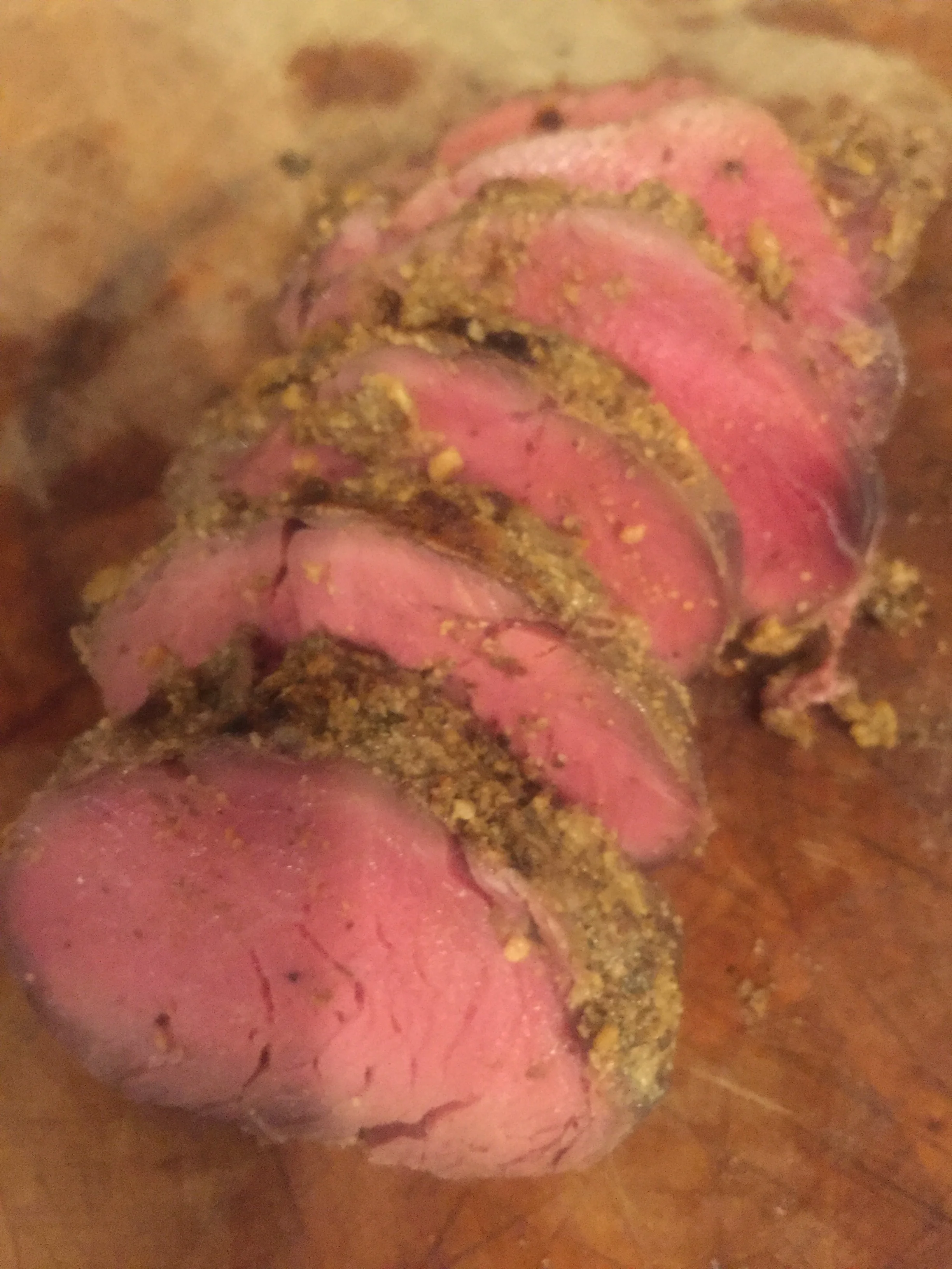 Dried Mushroom and Toasted Pepita Crusted Venison Loin.